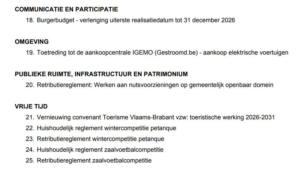 Heb je vragen of opmerkingen over punten die aan bod komen tijdens de raad? Stuur ons gerust een bericht via contact. We zorgen ervoor dat jullie input wordt meegenomen in de varia van de gemeenteraad.